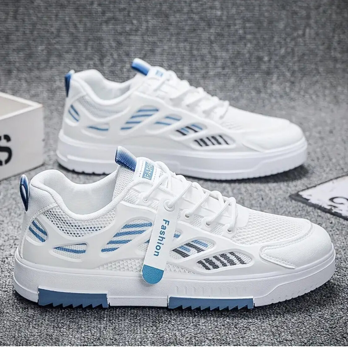 Découvrez ces baskets blanches légères et tendance pour un confort optimal au quotidien. Idéales pour le sport ou pour un look décontracté, elles offrent une respirabilité exceptionnelle avec leur matériau en mesh. Parfaites pour marcher, courir ou simplement pour compléter une tenue urbaine moderne.
