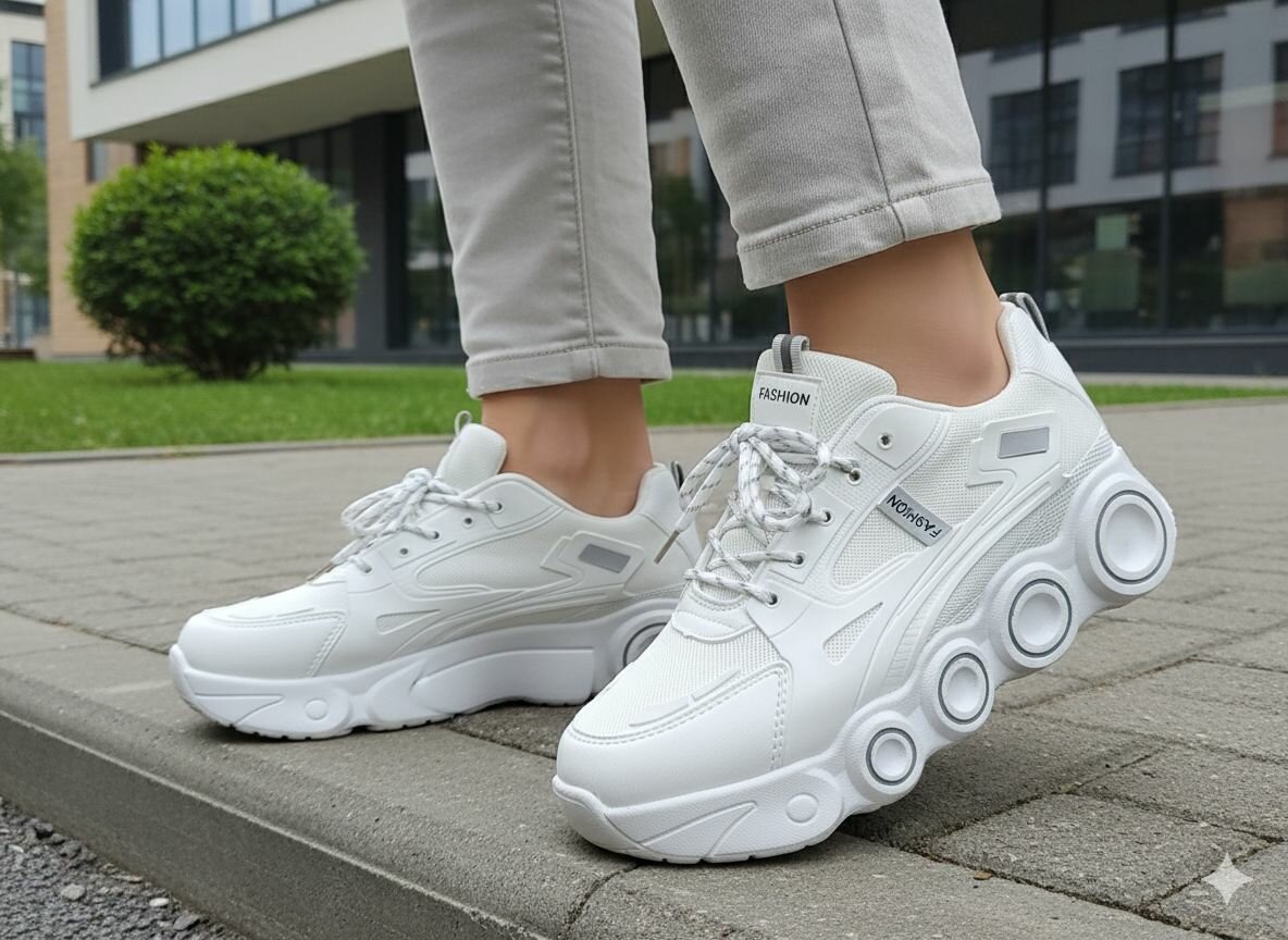 Découvrez ces baskets blanches au design moderne et futuriste ! Idéales pour un style urbain et décontracté. Avec leur semelle innovante et leur confort exceptionnel, elles sont parfaites pour les sorties en ville ou le sport. Ne manquez pas l'occasion de vous démarquer avec ces chaussures uniques !