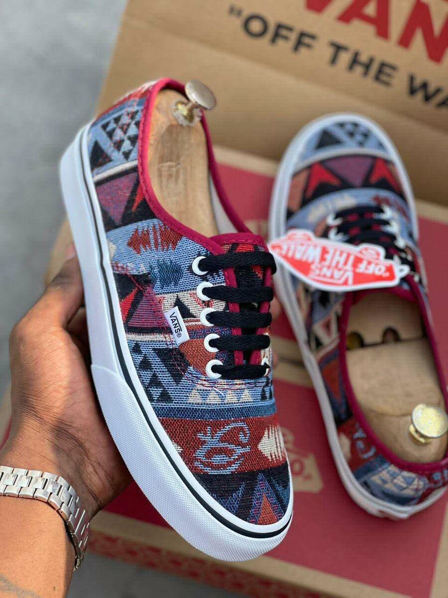 Élégantes baskets en toile avec motif géométrique coloré. Idéales pour un style décontracté et unique. Confortables et tendances, parfaites pour toutes vos sorties urbaines.