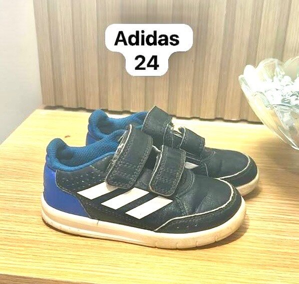 Chaussures Adidas pour enfant avec bandes Velcro, parfaites pour un confort quotidien et une allure sportive. Idéales pour l'école ou le parc.