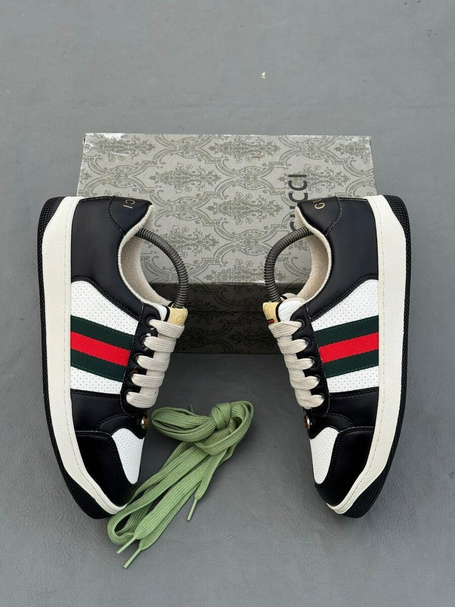 Découvrez le style et le confort ultime avec ces baskets noires et blanches, ornées de bandes vertes et rouges iconiques. Confectionnées en matériaux de haute qualité, elles sont robustes et parfaites pour un usage quotidien ou des occasions spéciales. Livrées avec des lacets de rechange, ces baskets sont l'accessoire idéal pour compléter votre look moderne et dynamique. Parfaites pour les hommes cherchant à allier élégance et confort dans leur quotidien.