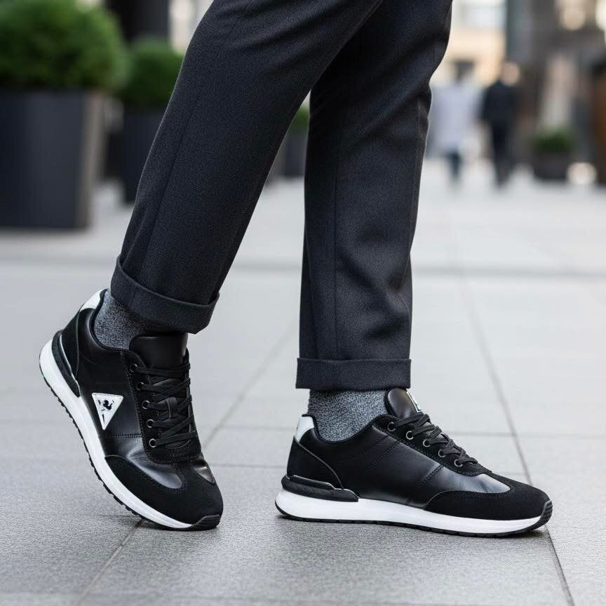 Découvrez ces baskets noires modernes, parfaites pour un look décontracté-chic. Avec leur design élégant, elles complètent à merveille les tenues urbaines. Confortables et stylées, elles sont idéales pour vos journées actives en ville. Choisissez-les pour leur style intemporel et leur adaptabilité à votre garde-robe.
