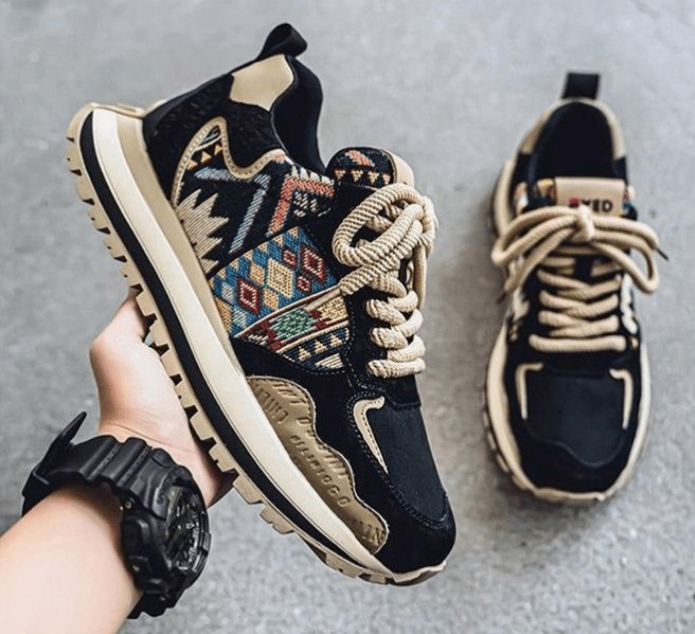 Découvrez ces baskets homme au style ethnique, alliant confort et tendance avec leurs motifs vibrants. Parfaites pour un usage quotidien.
