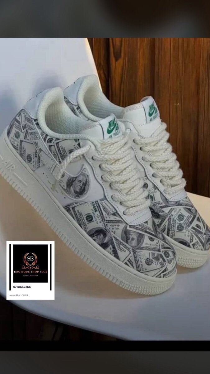 Découvrez ces baskets uniques au design audacieux d'imprimé billet. Idéales pour affirmer votre style, elles combinent confort et originalité. Parfaites pour les amateurs de mode urbaine cherchant à se démarquer. Faites sensation à chaque pas!