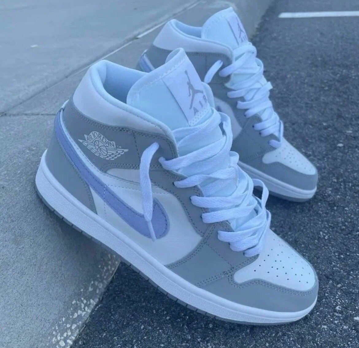 Découvrez ces baskets Jordan élégantes, grises avec des accents violets. Conçues pour le style et le confort, elles sont parfaites pour un usage quotidien ou pour les amateurs de mode sportive. Les lacets et la semelle blanche ajoutent une touche de fraîcheur.