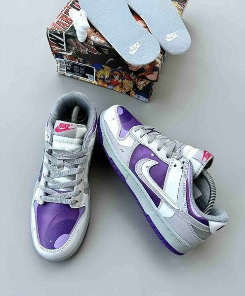 Découvrez ces baskets modernisées avec des accents violets et gris, idéales pour une tenue décontractée et tendance. Leur design unique assure confort et style pour chaque pas.