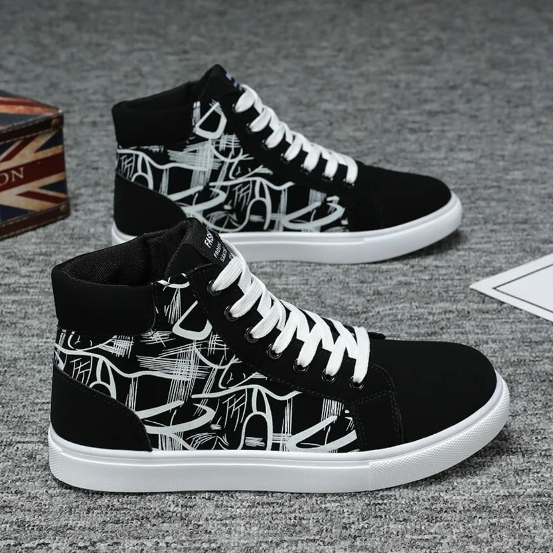 Élevez votre style avec ces baskets montantes à motif graffiti noir et blanc. Confort et allure urbaine pour un look unique et tendance. Idéales pour les sorties décontractées ou une touche de modernité dans votre quotidien.