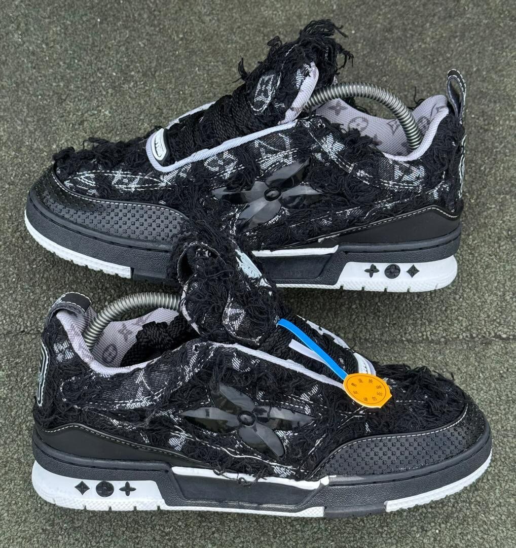 Découvrez ces baskets au design unique en tissu effiloché noir. Leur style audacieux et moderne les rend parfaites pour une touche d'originalité dans votre garde-robe. Confortables et résistantes, elles sont idéales pour une journée décontractée ou une sortie en ville. Ne manquez pas de capturer l'attention avec ces chaussures exceptionnelles !