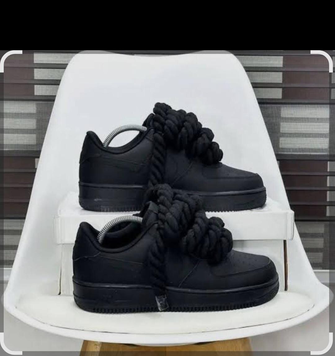 Découvrez ces baskets noires uniques avec lacets surdimensionnés, parfaites pour un look tendance et audacieux. Idéales pour les amateurs de mode qui cherchent à se démarquer.