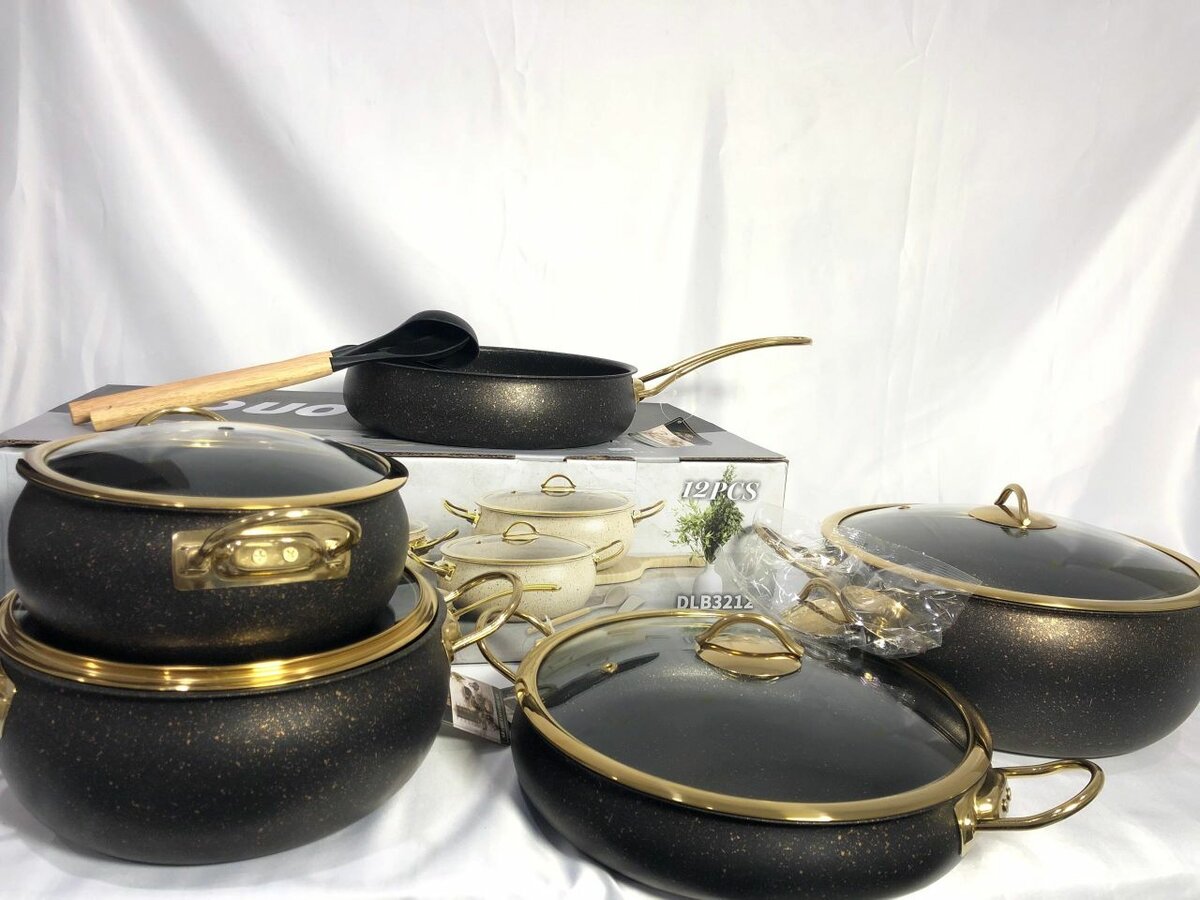 Transformez votre cuisine avec notre batterie de cuisine en fonte d'aluminium antiadhésive. Parfaite pour toutes vos recettes, elle assure une répartition uniforme de la chaleur. Son design raffiné avec des détails dorés apporte une touche de luxe.