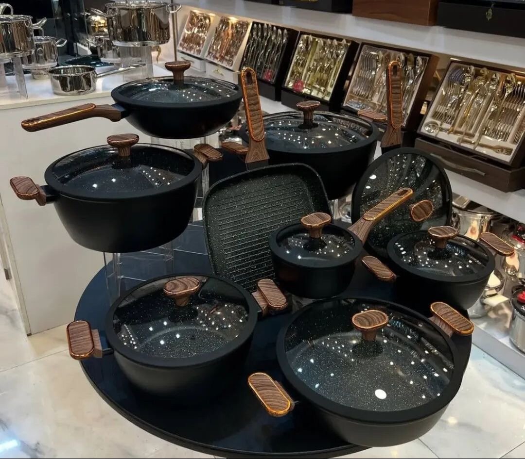 Découvrez cette élégante batterie de cuisine en granit résistant. Parfaites pour tous vos besoins culinaires, ces casseroles et marmites offrent une répartition uniforme de la chaleur. Idéales pour cuisiner des plats sains, elles allient durabilité et style moderne. Un choix parfait pour toute cuisine professionnelle ou familiale. Faites passer vos repas au niveau supérieur avec ces incontournables de la cuisine.
