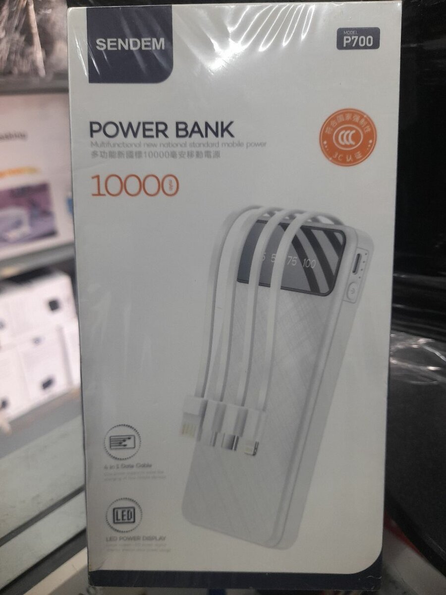 Découvrez la batterie externe Sendem P700, idéale pour recharger vos appareils mobiles grâce à sa capacité de 10000mAh. Dotée d'un écran LED pour surveiller la charge, elle inclut également des câbles intégrés pour une compatibilité universelle. Compacte et pratique, elle est parfaite pour les déplacements.
