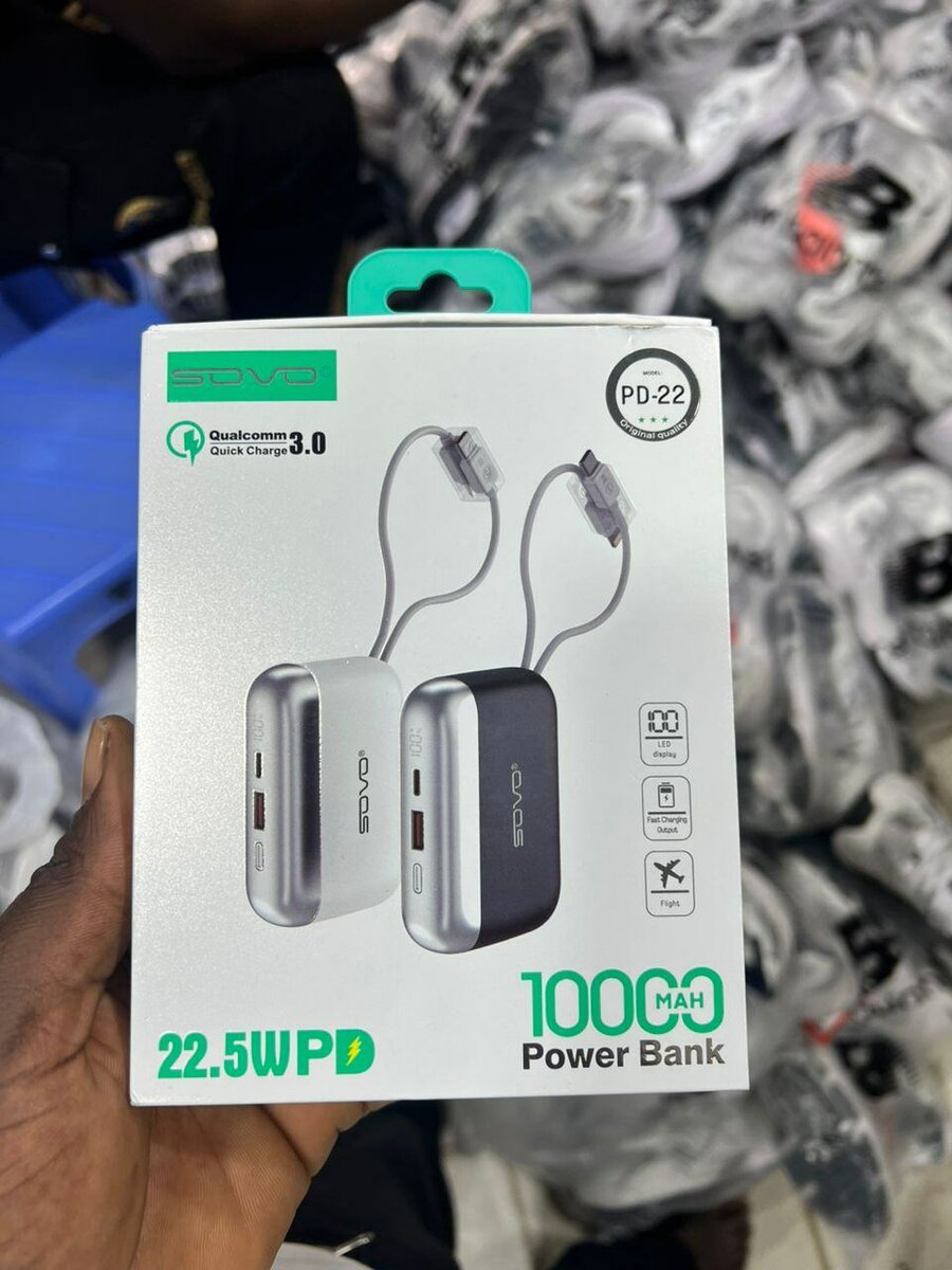 Optez pour cette batterie sovo externe de 10000mAh avec technologie de charge rapide. Parfaite pour tous vos appareils en déplacement. Compacte, élégante et compatible avec la plupart des smartphones et tablettes. Idéale pour les voyages et les journées b.
