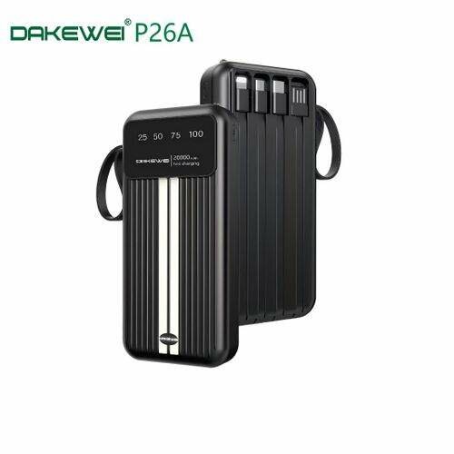 Puissante batterie externe Dakewei P26A de 20000mAh pour recharger vos appareils en déplacement. Design élégant et compact, parfait pour les voyages. Indicateur de niveau de charge intégré, compatible avec divers dispositifs électroniques. Ne manquez jamais d'énergie!