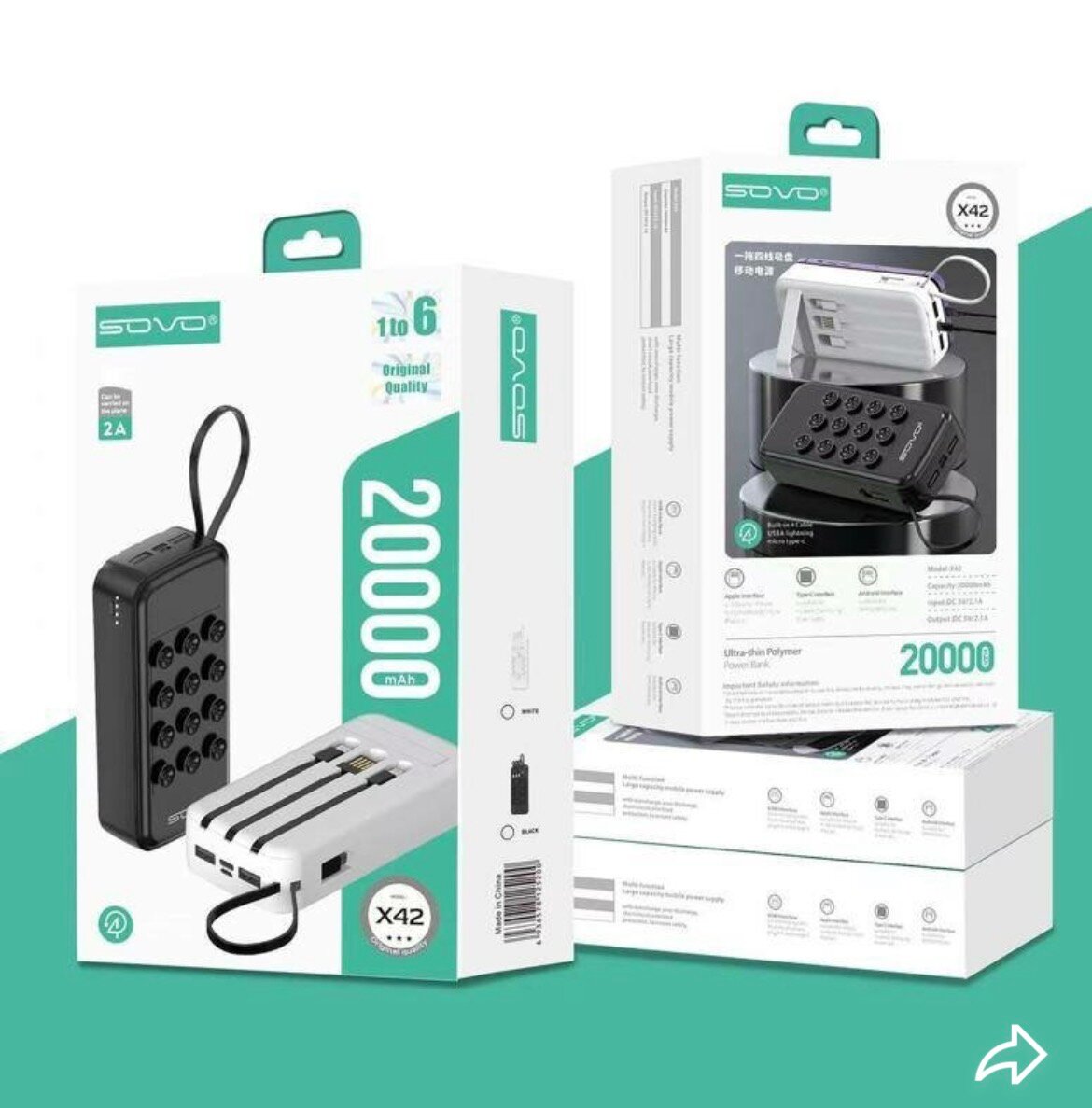 Optez pour cette puissante batterie externe SOVO de 20000mAh, idéale pour recharger vos appareils en déplacement. Avec sa charge rapide 2A et son design compact, elle est parfaite pour les voyages. Compatible avec divers dispositifs pour toujours rester connecté.