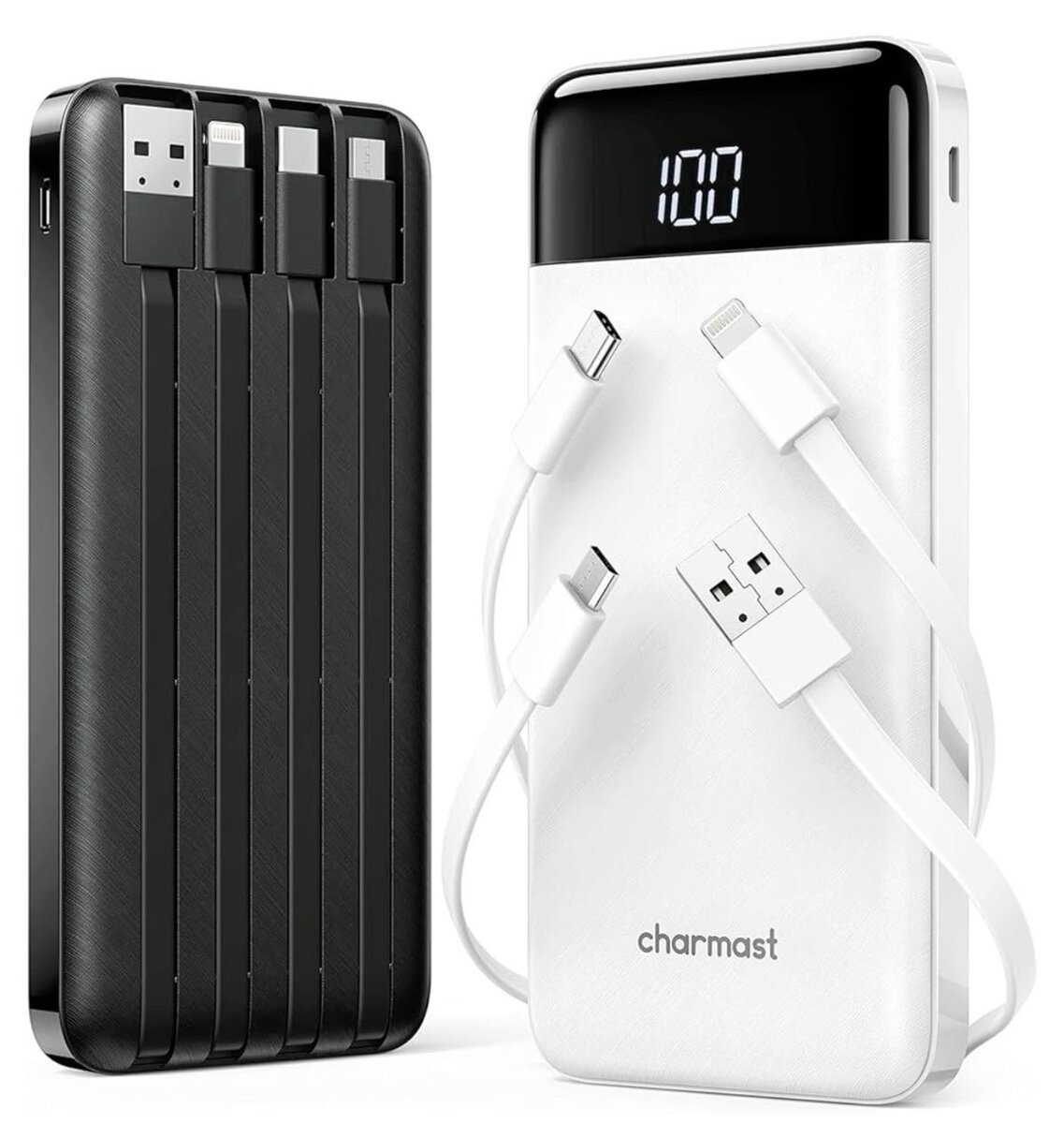 Optez pour cette batterie externe à charge rapide avec câbles intégrés. Compatible avec divers appareils, elle offre une recharge efficace en déplacement. Idéale pour les voyages ou les journées bien remplies.