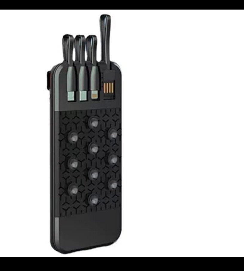 Découvrez cette batterie externe multifonction avec supports pour câbles intégrés. Parfaite pour recharger vos appareils lors de vos déplacements. Compacte et pratique.