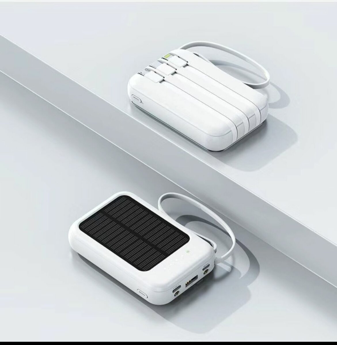 Batterie externe solaire à 4 fils 20 000 mAh, charge rapide, petite et grande capacité, compatible avec Apple, Android et Xiaomi Blanc ivoire Solaires