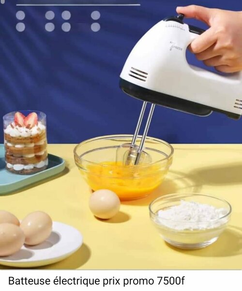Batteur sur socle robuste avec bol en acier inoxydable. Idéal pour la préparation de divers ingrédients en cuisine. Léger et facile à utiliser.