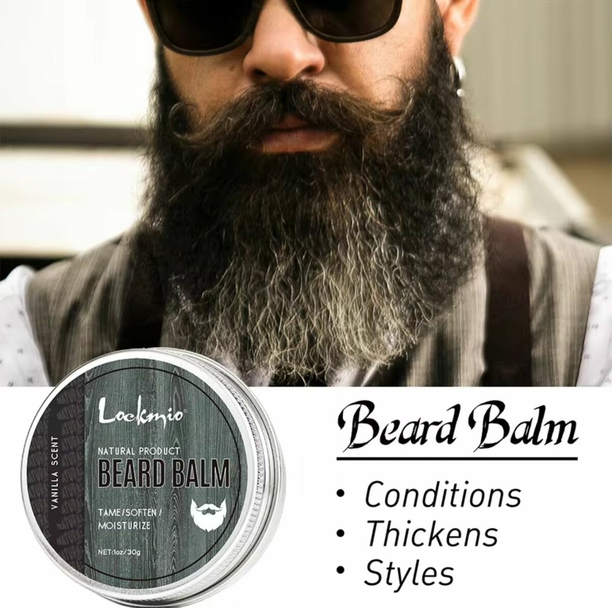 baume à barbe naturel cire parfum vanille tamer adoucir hydrater épaissir les Styles crème de soin de barbe lisse pour messieurs
