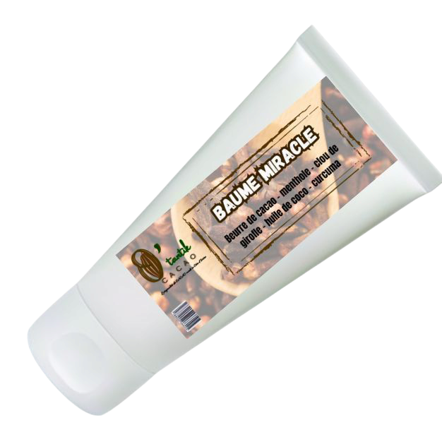 Découvrez le Baume Miracle, parfait pour nourrir et hydrater la peau. Enrichi en beurre de cacao, huile de coco et curcuma, idéal pour un soin quotidien naturel. Convient à tous types de peau.