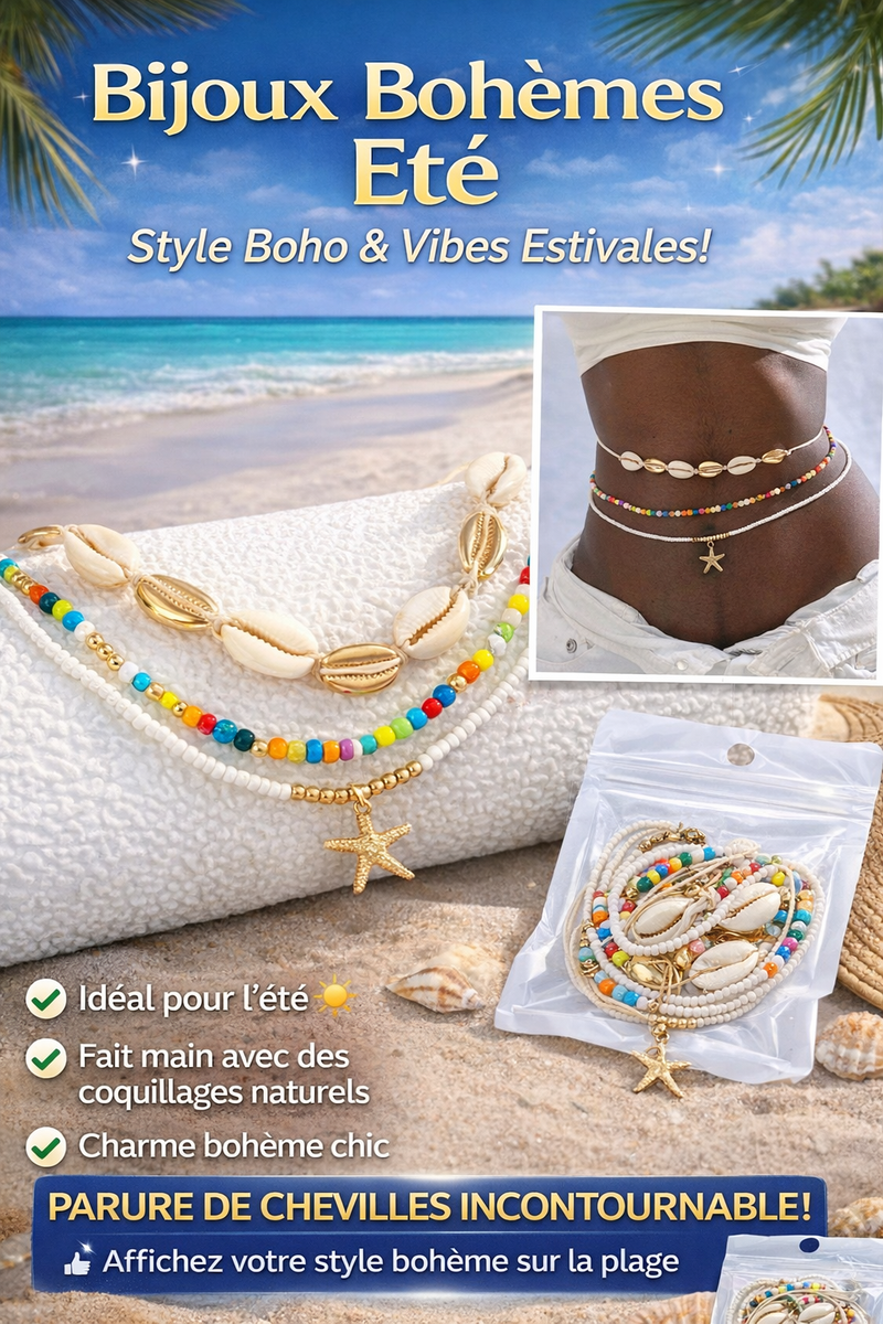 Sublimez votre style avec la parure de cheville bohème, idéale pour l'été. Fait main avec des coquillages naturels, elle apporte une touche chic et colorée à vos tenues estivales. Parfaite pour la plage ou vos sorties décontractées, elle sera le choix incontournable pour compléter votre look.