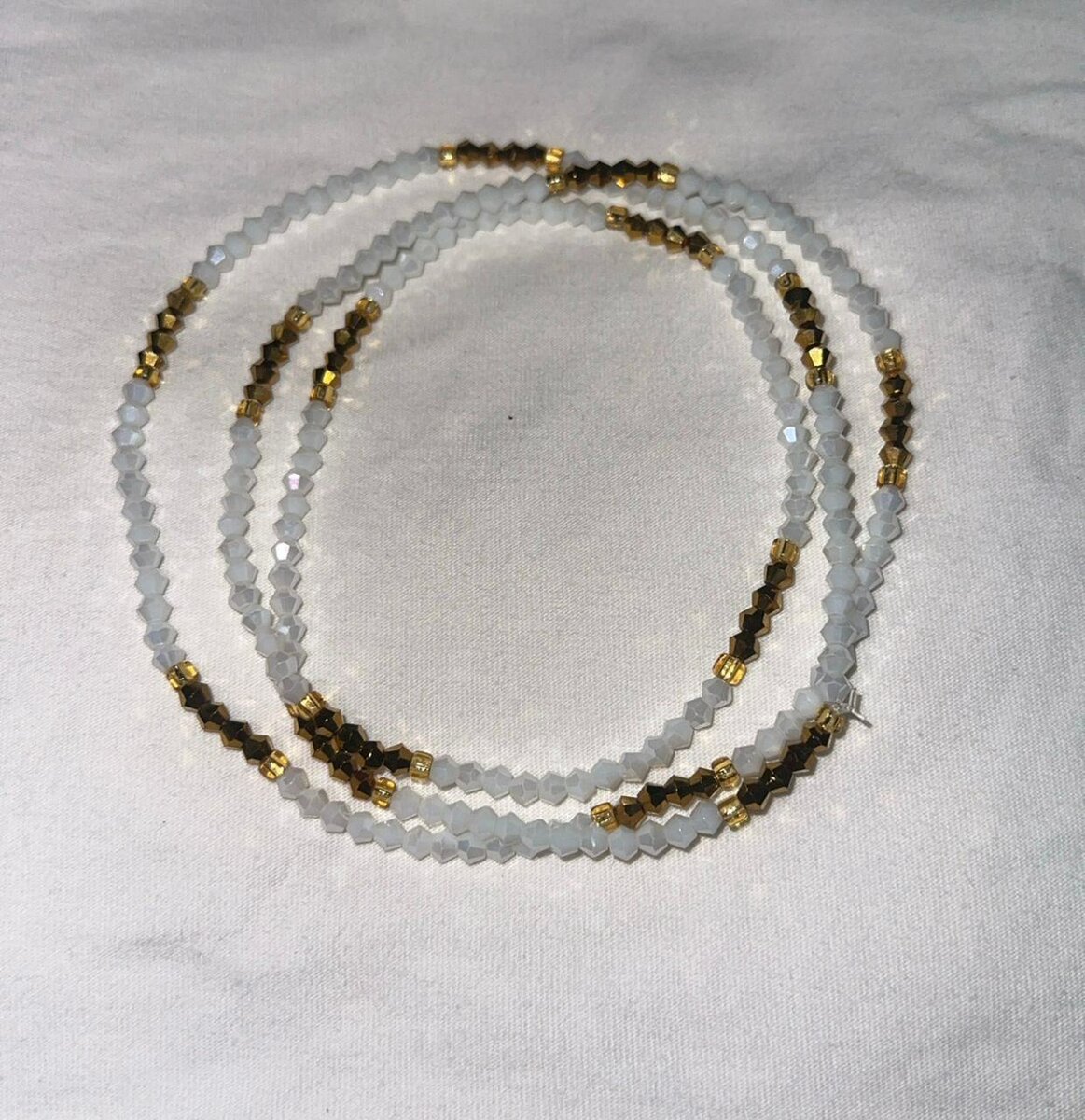 Ce bracelet élégant associe des perles dorées et blanches pour un look chic. Parfait pour toutes les occasions, il ajoute une touche raffinée à votre tenue. Idéal pour offrir en cadeau ou compléter votre collection de bijoux.