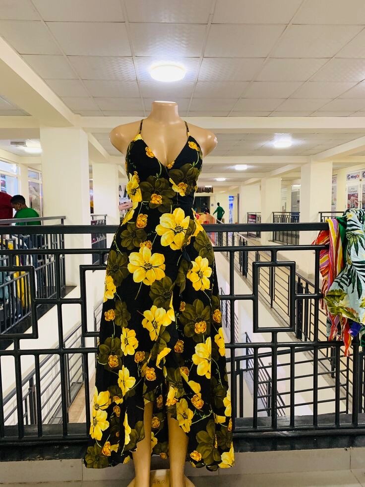 Women's Fully Lined Floral Halter Neck Maxi Dress