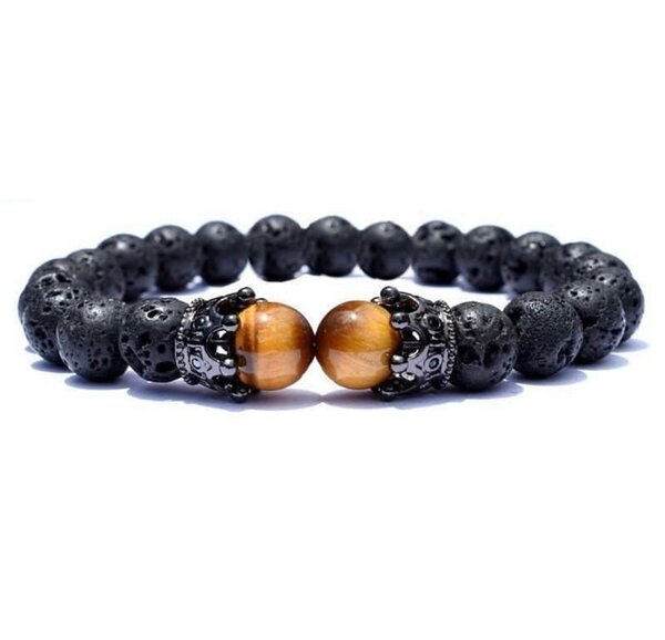 Unisex Lava Stone Crown Bracelet