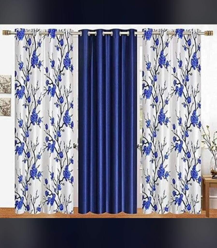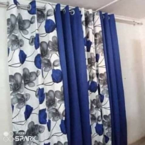 4 rideaux set 1m 10 de large 2m 35 de long fleurs grises et bleues
