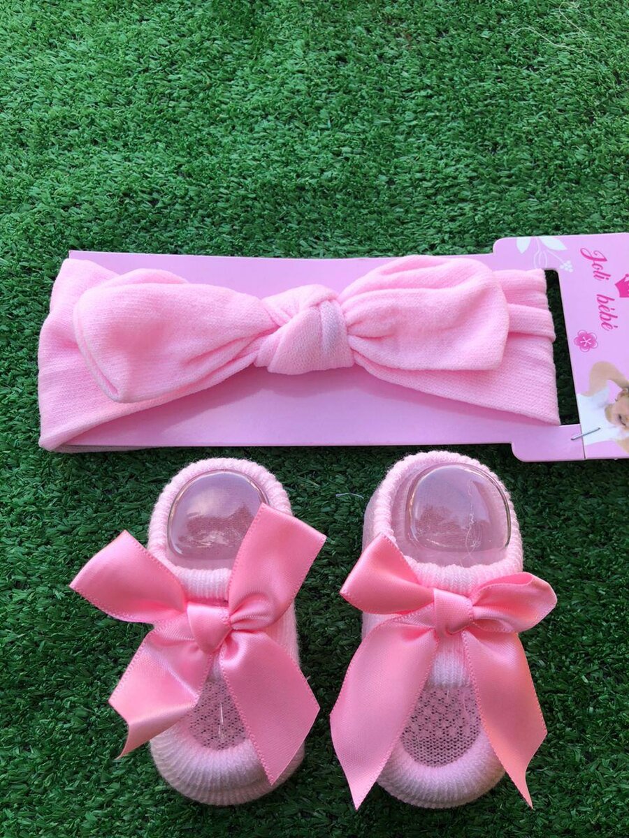 Adorable ensemble pour bébé comprenant des chaussures douces et un bandeau assorti. Parfait pour les tenues de fête ou un look quotidien élégant. Disponible en plusieurs couleurs pastel pour s'harmoniser avec toute garde-robe. Un choix confortable et chic pour sublimer le style de votre enfant.