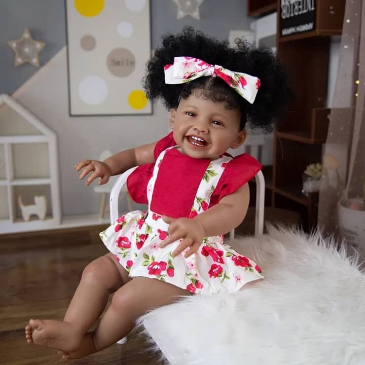 Découvrez cette adorable poupée réaliste de 55cm, parfaite pour les enfants et les collectionneurs. Avec son sourire charmant et sa tenue florale, c'est le compagnon idéal pour des heures de jeu créatif.