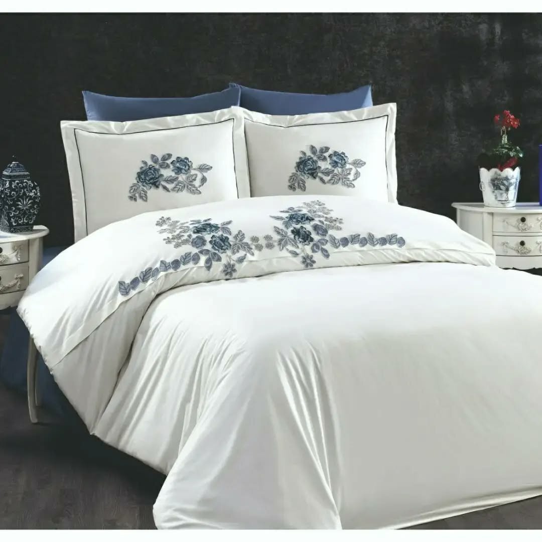 Поддерживая модные тенденции ,вашу постель украсили прекрасные цветы вышитые гладью,и бусины в виде сияющих бриллиантов💎