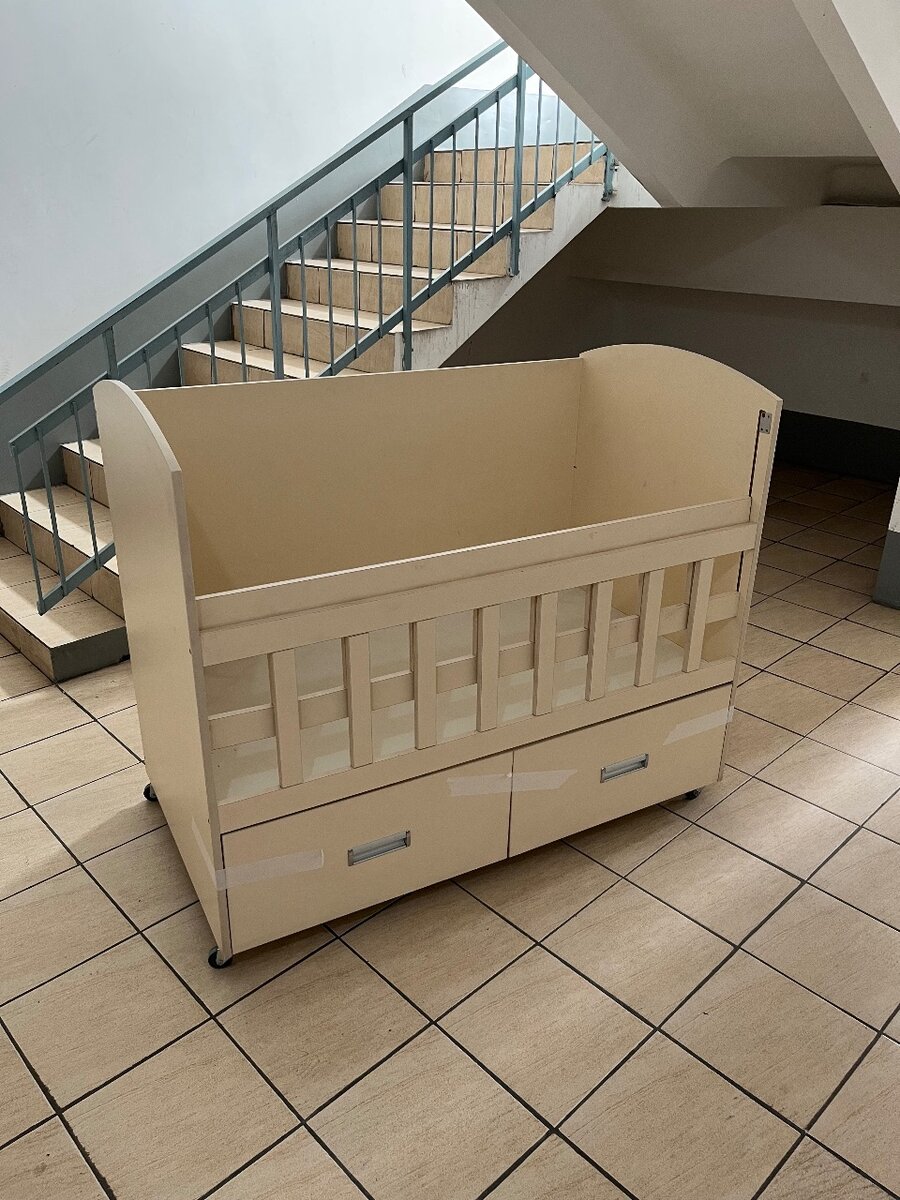Детская кроватка Состояние хорошее На колесах Есть 2 шкафа снизу для вещей и тд Матрас в комплекте
