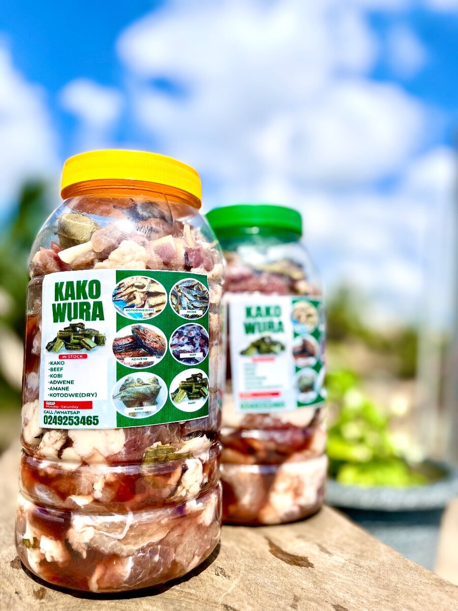 Salted beef is a basic ingredient in Ghanaian cooking. It is basically cured beef as a way to make is flavourful. It is used as a starting ingredient for most soups and stews and is the basic ingredient in angwa mo (rice).