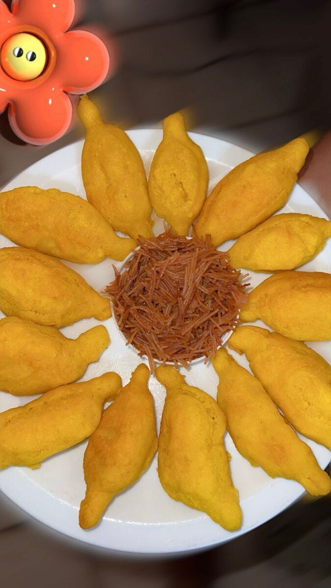 Beignets africains jaune avec des vermicelles accompagnés de jus ( Bissap ou gingembre)