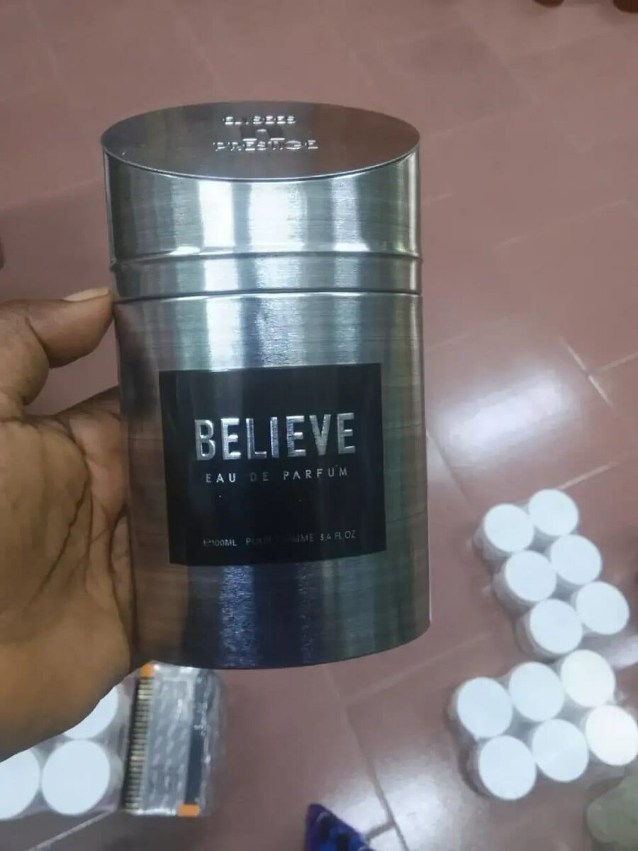 Découvrez BELIEVE, un parfum captivant présenté dans une élégante boîte métallique. Parfait pour les amateurs de parfums intenses, il offre une fragrance durable et raffinée. Un cadeau idéal ou un accessoire personnel de luxe.