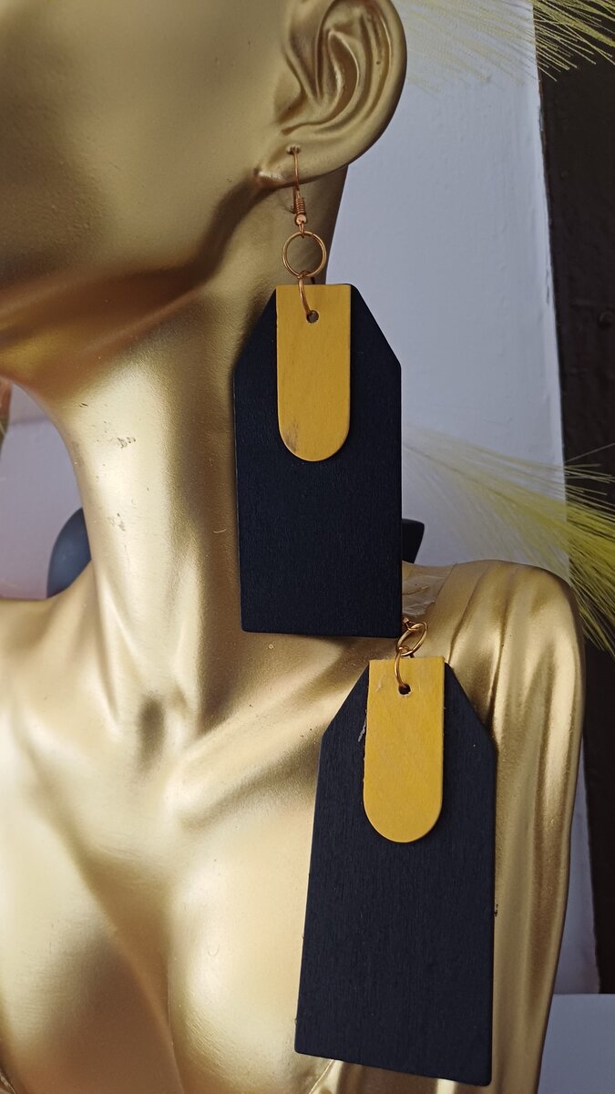 Boucles d'oreilles Afrique bois et or