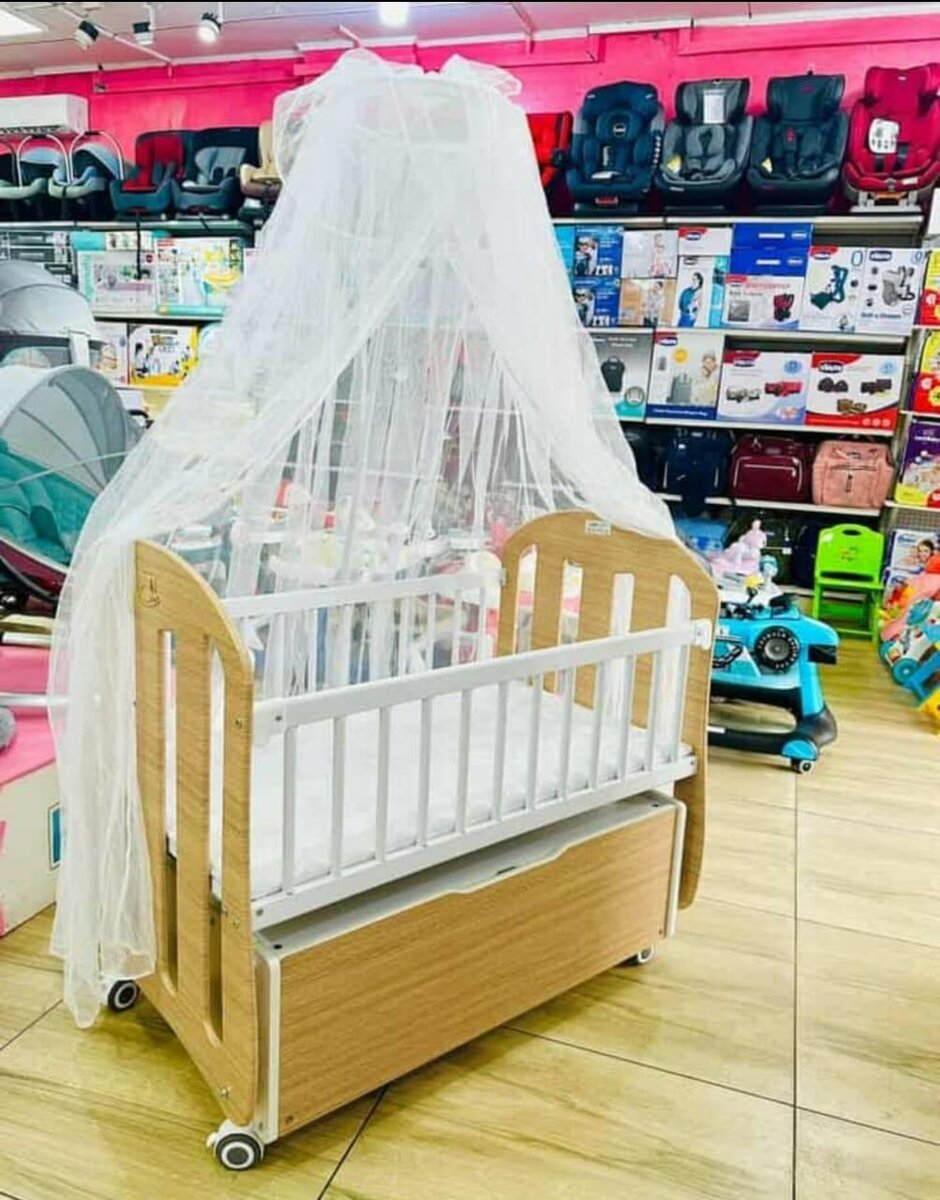 Offrez un sommeil paisible à votre bébé avec ce magnifique berceau équipé d'un baldaquin délicat. Parfait pour la chambre de votre enfant, il offre confort et sécurité avec ses barrières robustes. Les roues facilitent le déplacement, et le rangement intégré est idéal pour les accessoires essentiels. Un choix élégant et pratique pour les parents attentionnés.