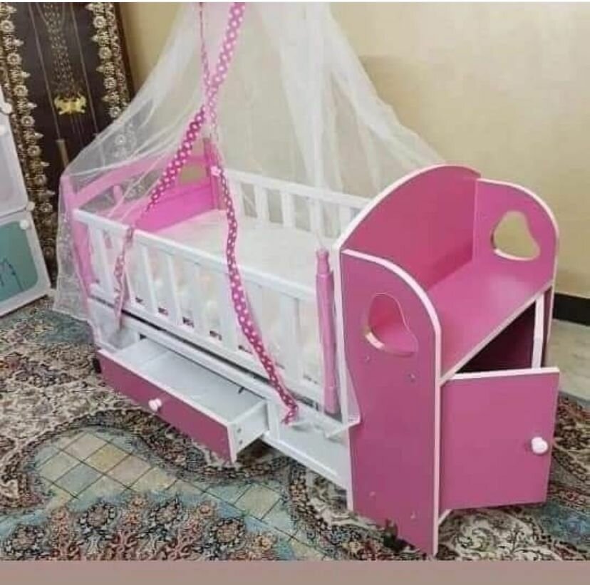 Berceau en bois avec armoire a côté et sa balance