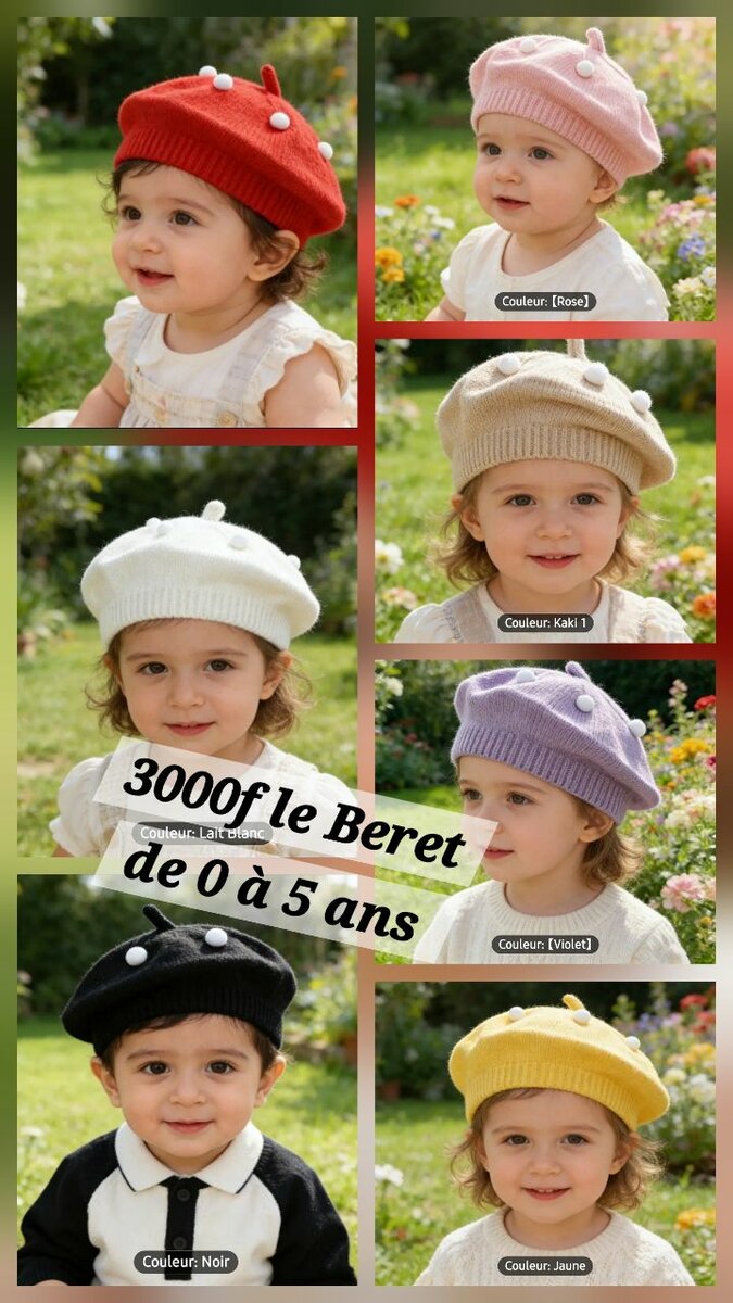 Adorable béret en laine pour enfants, doux et élégant. Disponible en plusieurs couleurs vives pour un look mignon et confortable. Parfait pour les sorties et événements familials. Convient aux enfants de 0 à 5 ans.