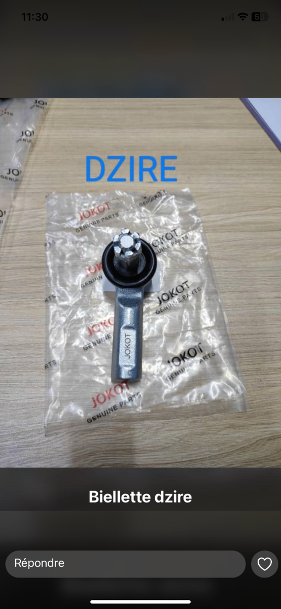 Optez pour la biellette de direction Dzire pour une conduite précise et sécurisée. Fabriquée avec des matériaux durables, elle garantit un excellent contrôle de votre véhicule. Idéale pour assurer la stabilité et la maniabilité, cette biellette est un choix incontournable pour la maintenance de votre voiture.