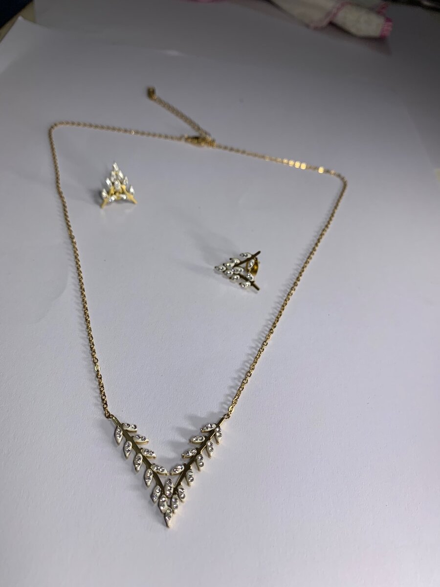 Élégante parure en acier inoxydable avec collier et boucles d'oreilles. Idéale pour compléter votre tenue avec style. Résistante et durable, elle convient à toutes les occasions. Un cadeau parfait pour elle.