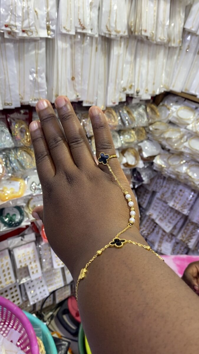 Découvrez notre bijou de main en or, une pièce de déclaration élégante avec des détails en perles et une fleur noire exquise. Parfait pour toutes les occasions, ce bracelet rehaussera votre style avec une touche sophistiquée.