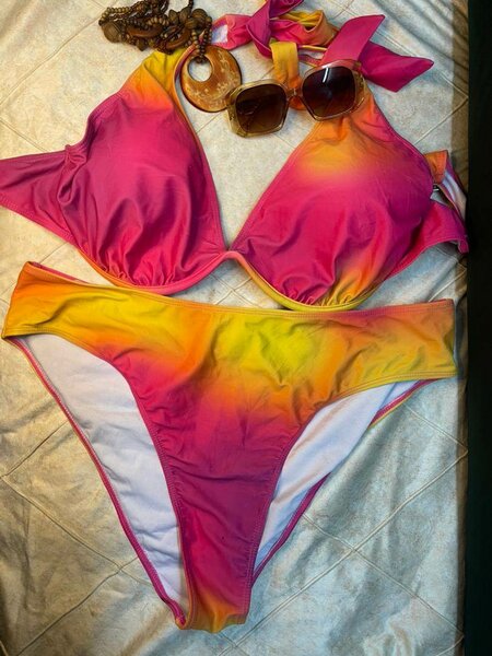 Ce bikini vibrant à rayures arc-en-ciel est parfait pour l'été. Fabriqué avec des matériaux de qualité, il offre confort et style à la plage ou à la piscine. Les attaches réglables assurent un ajustement parfait. Idéal pour celles qui aiment se démarquer avec des couleurs éclatantes.
