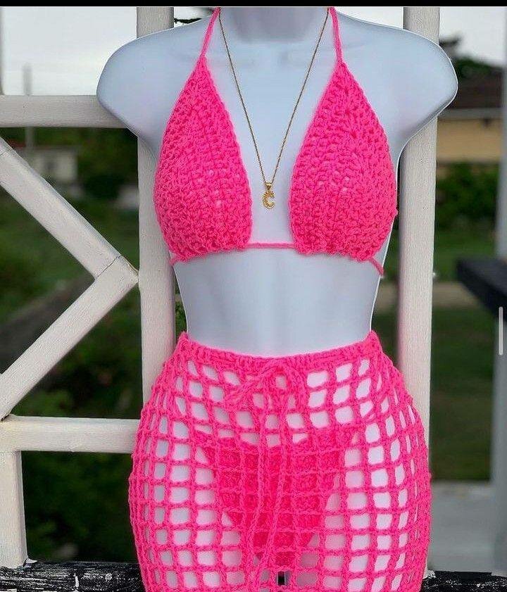 Explorez l'été avec ce bikini crochet rose vif, idéal pour la plage ou la piscine. Fabriqué à la main avec soin, il offre style et confort. Parfait pour se démarquer avec élégance et originalité.