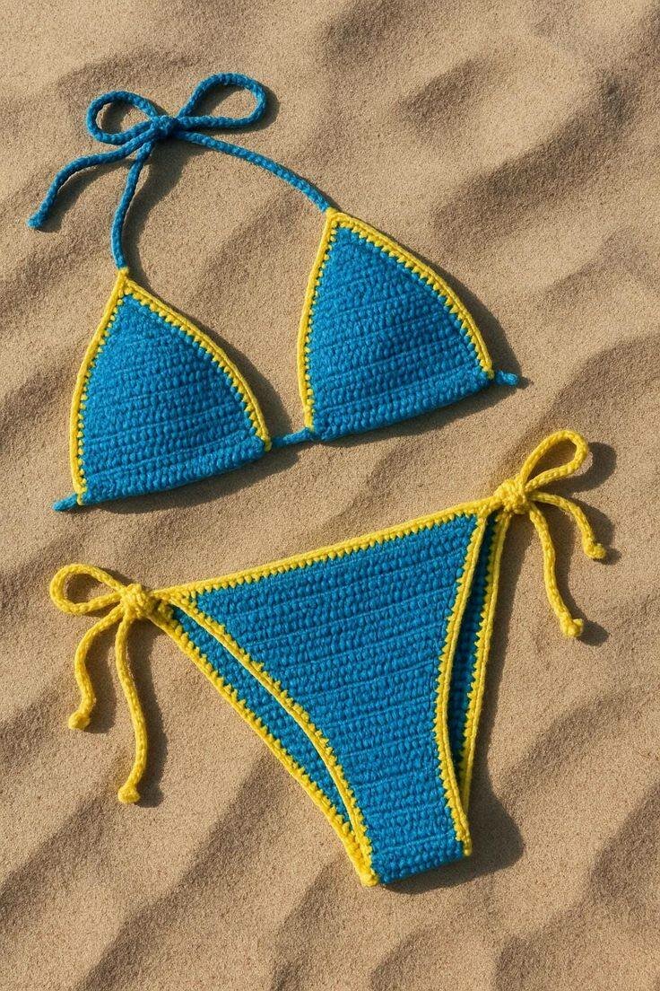 Bikini crochet jaune été