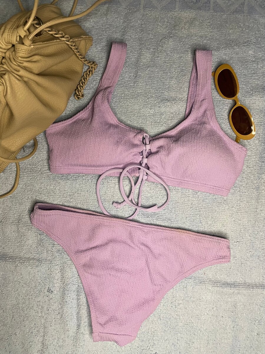 Découvrez ce bikini violet élégant. Parfait pour vos journées à la plage ou à la piscine, il combine style et fonctionnalité avec sa coupe moderne et son design attrayant. Un must-have pour toutes les amoureuses de la mode estivale!