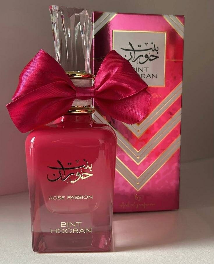 Découvrez "Bint Hooran Rose Passion", un parfum captivant aux notes de framboise, rose et vanille. 100ml