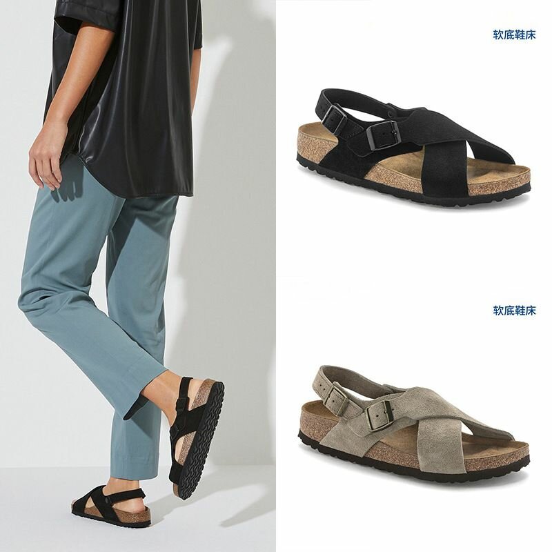 Pre-order, Dropshipping. Genuine leather, cross Birkenstock shoes for men and women, cork thick-solid flat Birkenstock ankle strap sandals.